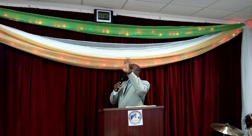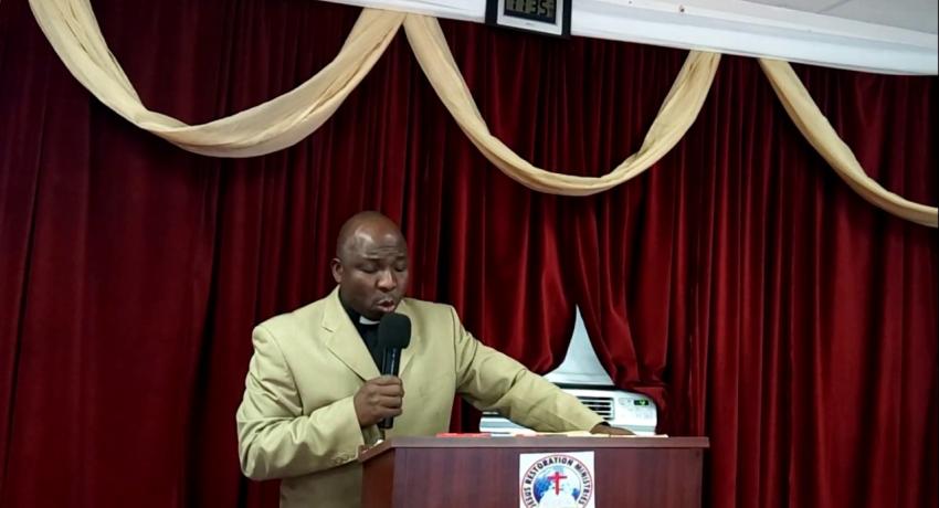 Pastor Festus Alabi praying at a wedding ceremony.